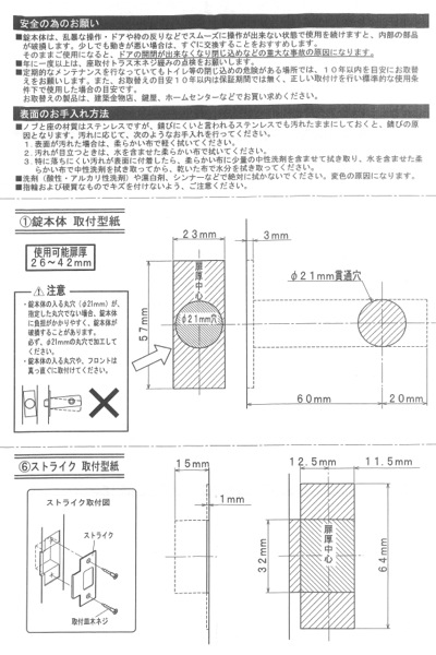 対応ドア厚:26mm-42mm バックセット:60mm