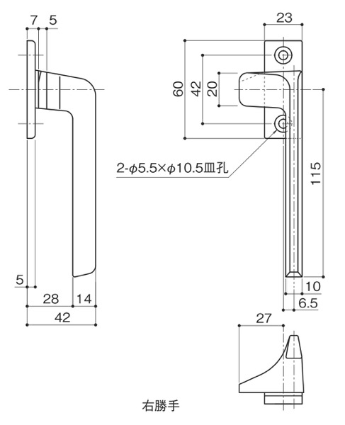 中西産業(ナカニシ) > カムラッチハンドル > ビスピッチ:42mm > 右勝手